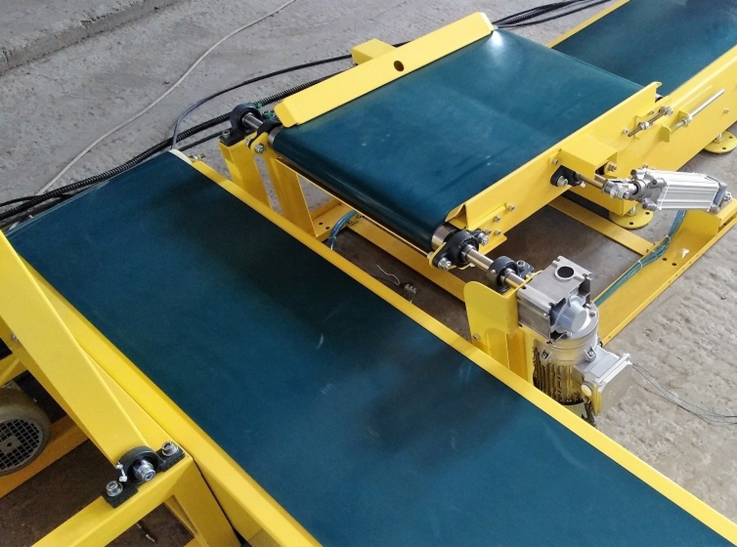 Был спроектирована и изготовлена система ленточных конвейеров, подающий конвейер и отводящий конвейер, с пневматическим толкателем и наклонным маятниковым конвейером, для плавного опускания брикета.